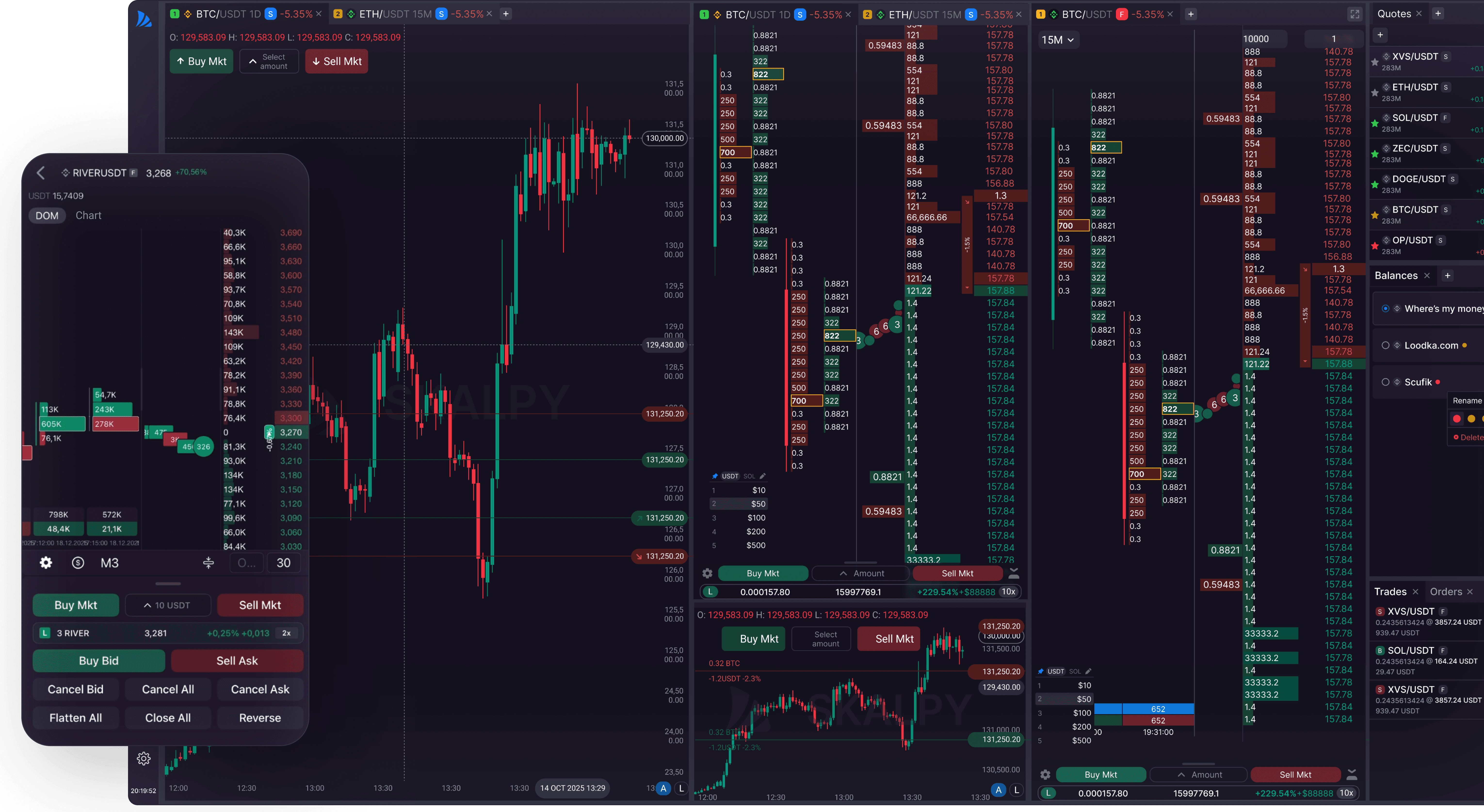 Trade crypto faster with Skalpy. Mobile-first scalping terminal with DOM, screener, and sync across web, iOS, and Android.