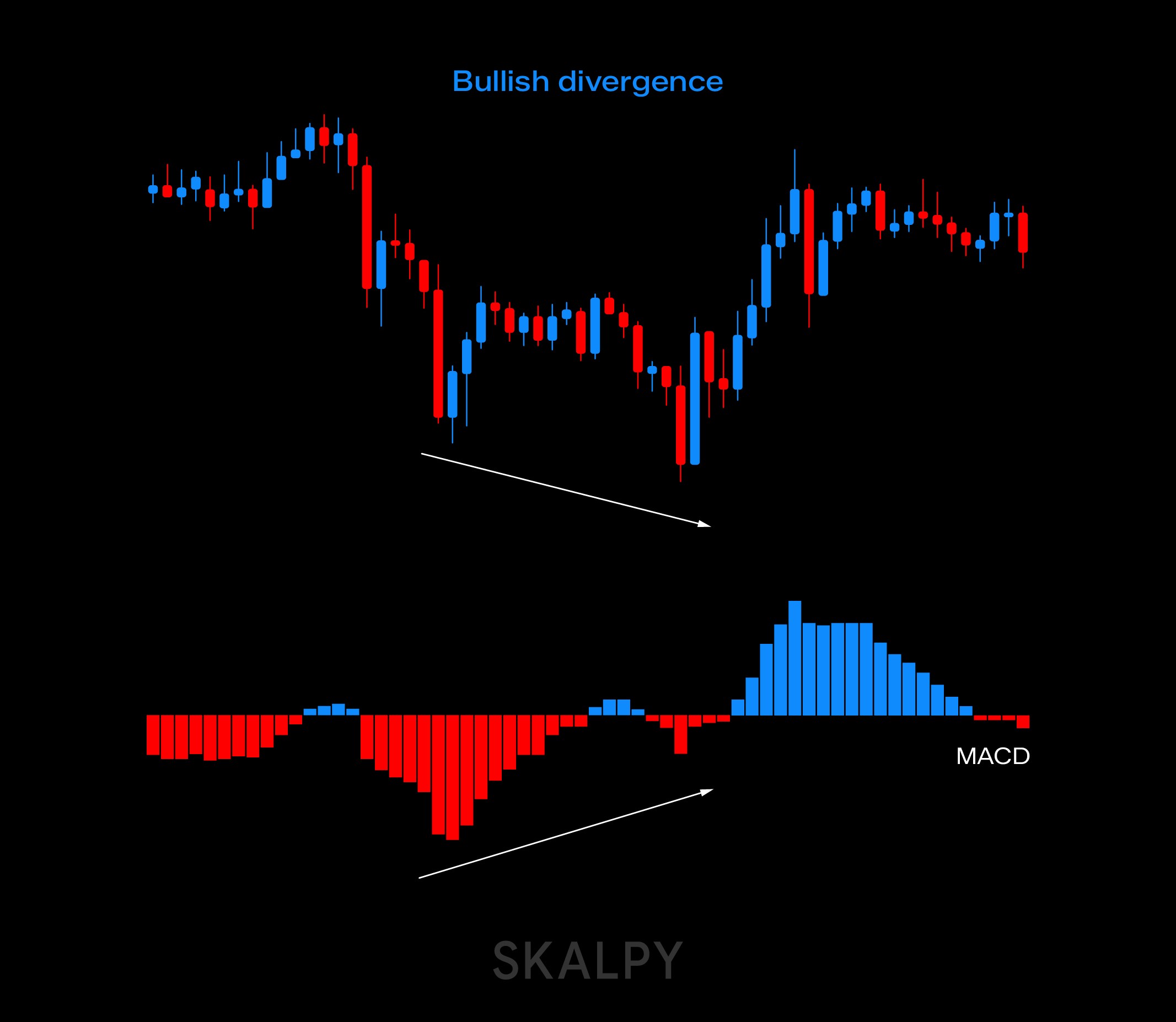Bullish divergence appears during downtrends. The price keeps dropping to lower lows, but your oscillator forms higher lows. This suggests sellers are losing control, and a bounce may be coming. Think of it as the market saying, "I'm making new lows, but my heart isn't in it anymore."