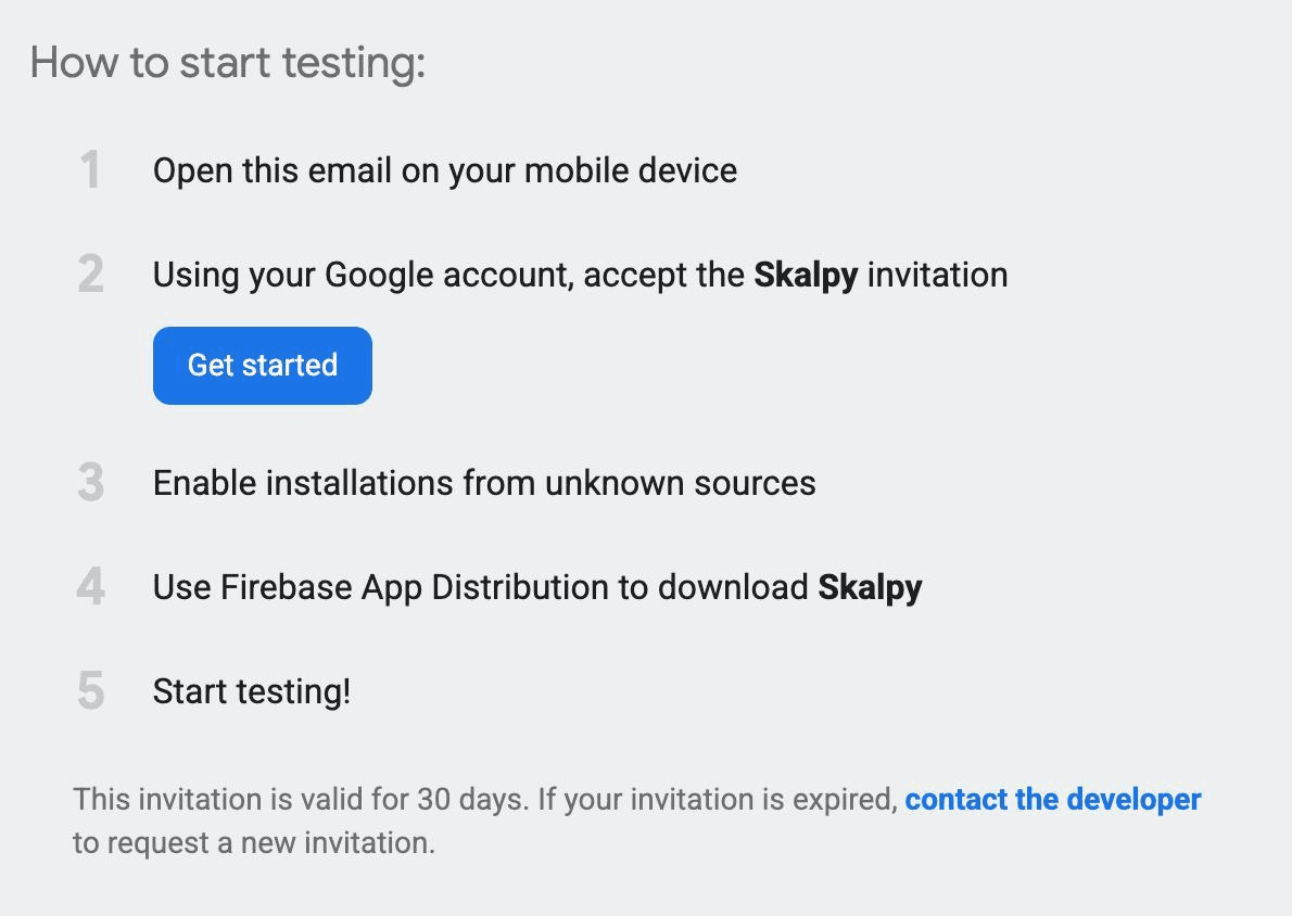 Внутри Firebase App Distribution выберите последнюю версию Skalpy и нажмите «Скачать».